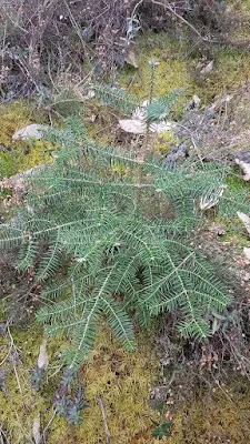 Otro helecho que observamos en el mismo sitio es el "Polipodium vulgare" vemos el helecho con las pinnas llenas de soros, este helecho crece entre los roqueros, muros y troncos de arboles, como curiosidad decir que sus raíces tienen un sabor dulce ocasionado por la sacarosa.